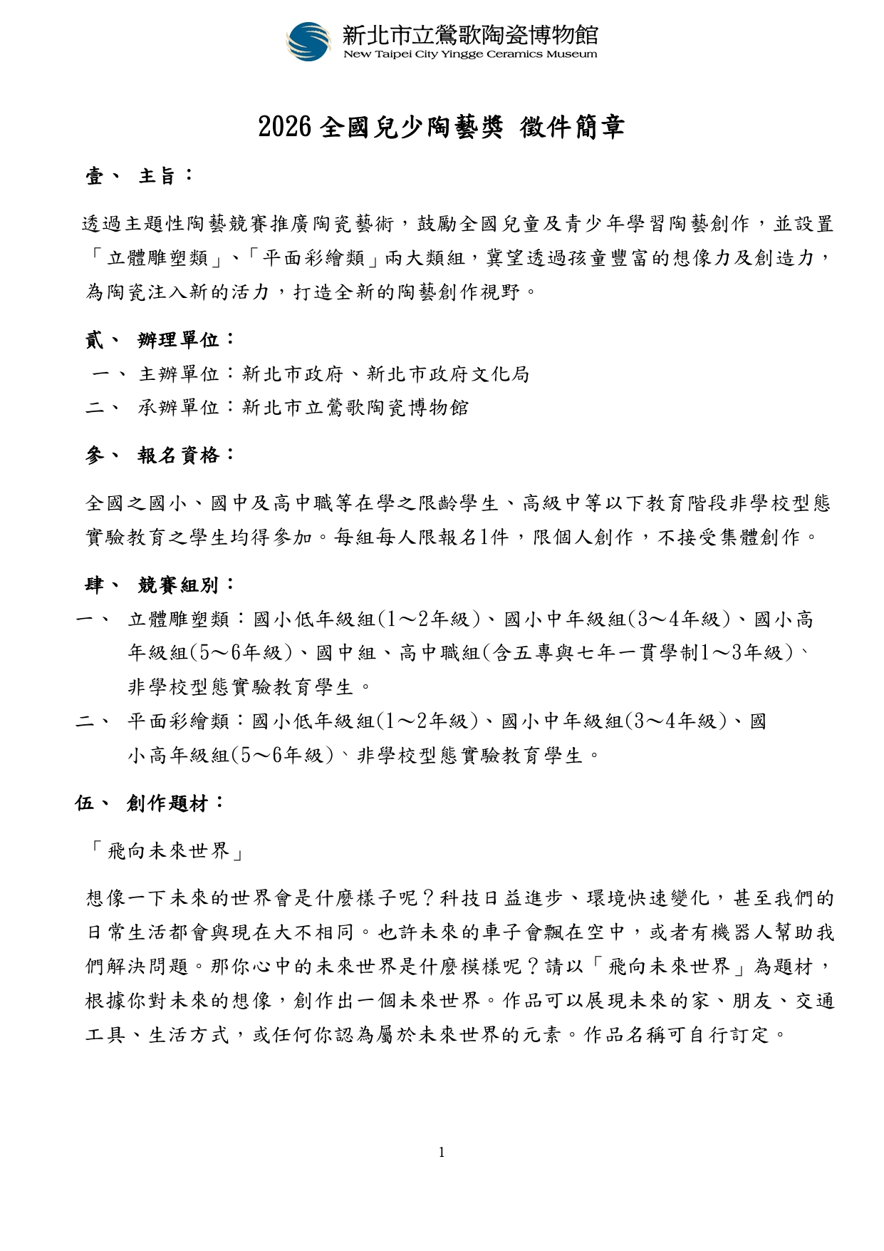 相關檔案: 2026全國兒少陶藝獎徵件簡章.pdf